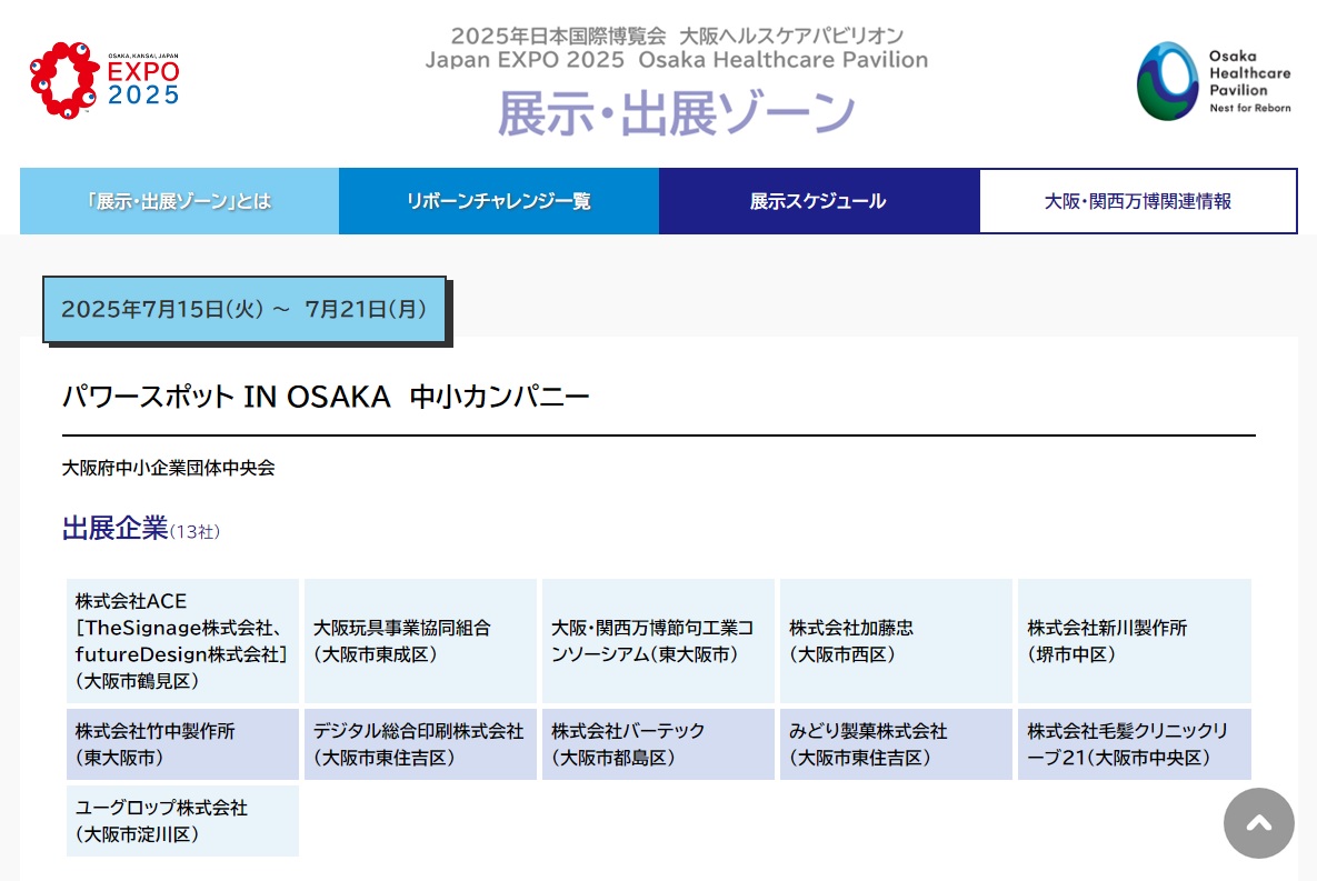 正真正銘自分の髪 リーブ21(本社:大阪市中央区、代表取締役社長:岡村勝正、以下「リーブ21」)は、大阪府中小企業団体中央会(大阪市中央区)の「パワースポット IN OSAKA中小カンパニー」13社に選出され、2025年7月15日(火)~7月21日(月)の間、大阪・関西万博の大阪ヘルスケアパビリオンに展示・出展します。