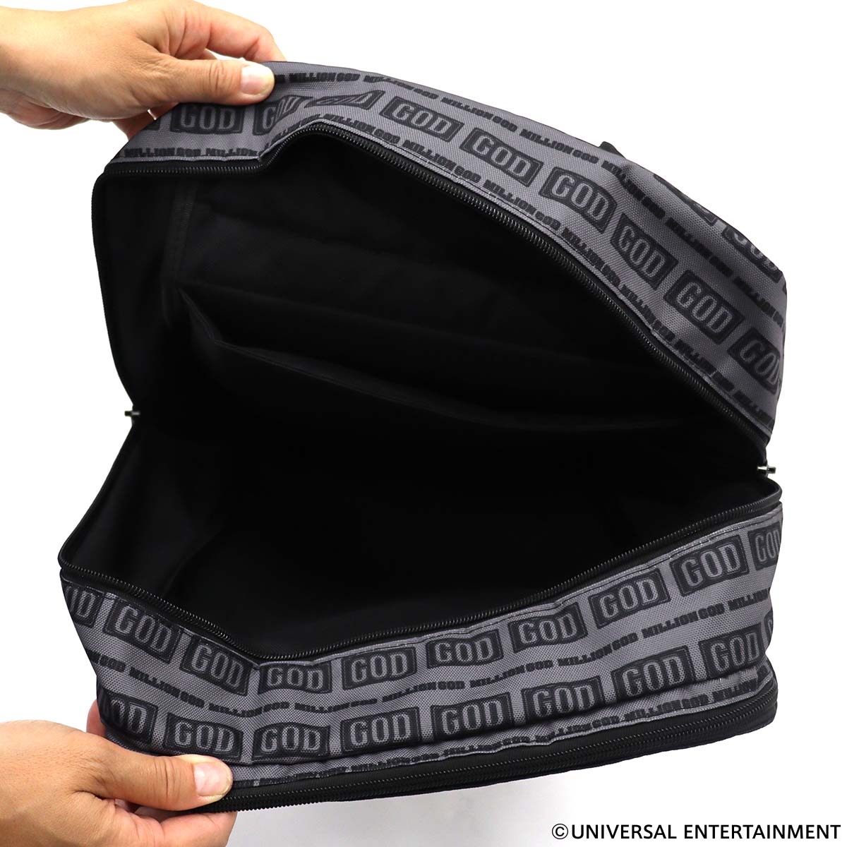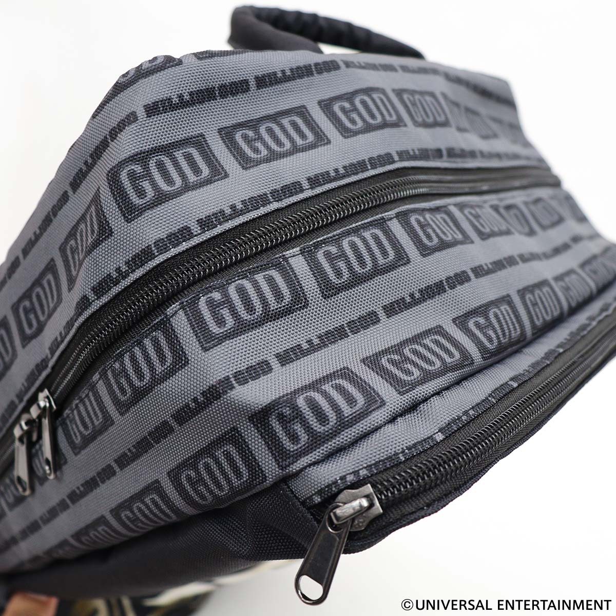 巨大なGOD図柄の中にGODステージを組み合わせた大胆なデザインのバックパック。