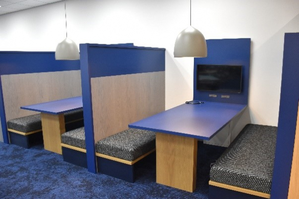 また、社内イベントや交流ができるスペースの確保、会議室の増加、休憩スペースの導入など、設備面の環境整備も行いました。