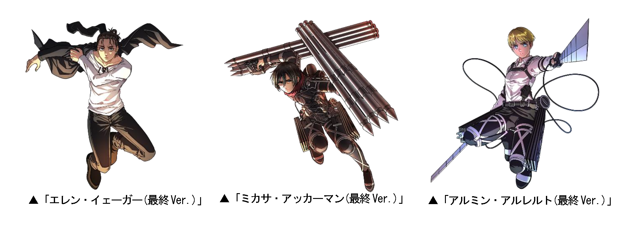 今回新たに「エレン・イェーガー(最終Ver.)」「ミカサ・アッカーマン(最終Ver.)」「アルミン・アルレルト(最終Ver.)」などが登場!