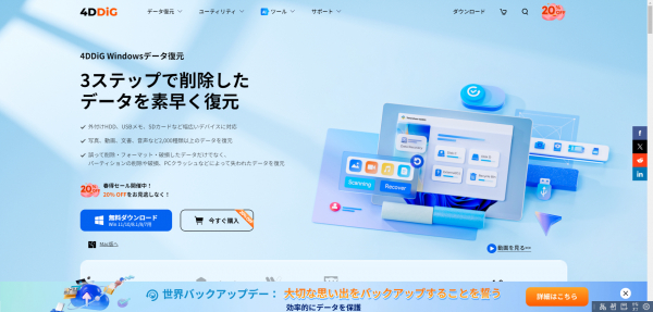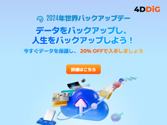 世界バックアップデーを記念して、4DDiGは全製品を20%OFFでご提供いたします。