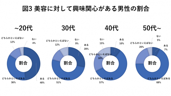 7割近くの男性が美容に対して興味関心を持っていることがわかりました。