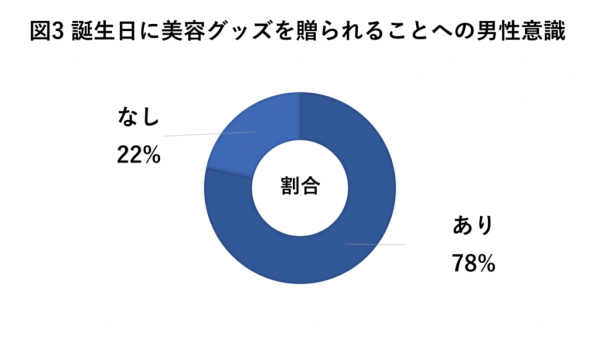 実際に誕生日に美容グッズを贈られることについては、「あり」と回答した方が78%、「なし」と回答した方は22%みられました。