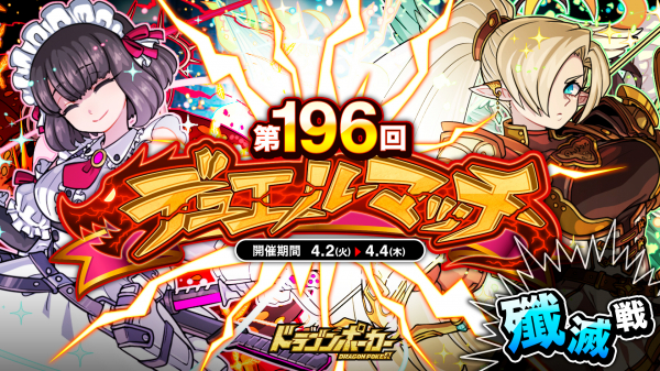 株式会社アソビズム(本社:東京都千代田区、代表取締役:大手智之)は、App Store・Google Playにて好評配信中のリアルタイム合体カードバトル『ドラゴンポーカー』で、2024年4月2日(火)より「第196回デュエルマッチ本戦」を開催いたします。