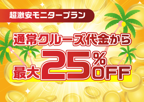 クルーズ予約サイト「ベストワンクルーズ」運営の株式会社ベストワンドットコム(本社:東京都新宿区、代表取締役:澤田秀太)は、大変ご好評いただきましたため、3月31日までとしていた、当社でチャーターする6月15日出発・6月19日出発のコスタセレーナ金沢発着クルーズの「超激安モニタープラン」の販売を、4月15日までに延長することといたしました。各出発日につき先着50組限定となります。