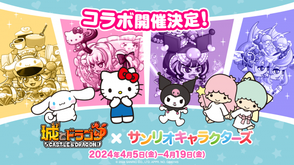 株式会社アソビズム(本社:東京都千代田区、代表取締役:大手智之)は、App Store・Google Playにて好評配信中の『城とドラゴン』で、『サンリオキャラクターズ』との初のコラボイベントを、2024年4月5日(金)より開催することが決定いたしました。