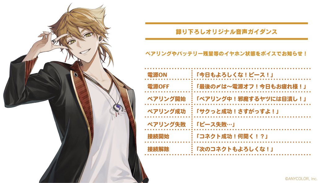 オンキヨー株式会社(所在地:大阪府大阪市、代表取締役社長:大朏 宗徳)は、完全ワイヤレスイヤホン「CP-TWS01A」とANYCOLOR株式会社が運営する「にじさんじ」※1に所属する伏見ガクとのボイス入りコラボレーションワイヤレスイヤホンを4月5日(金)から受注販売致します。