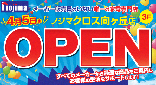 株式会社ノジマ(神奈川県横浜市 代表執行役社長 野島廣司 以下「当社」といいます)は、2024年4月5日(金)よりクロス向ヶ丘3階に【ノジマクロス向ヶ丘店】をオープンいたします。