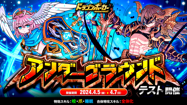株式会社アソビズム(本社:東京都千代田区、代表取締役:大手智之)は、App Store・Google Playにて好評配信中のリアルタイム合体カードバトル『ドラゴンポーカー』で、2024年4月5日(金)より「アンダーグラウンド」をテスト開催いたします。