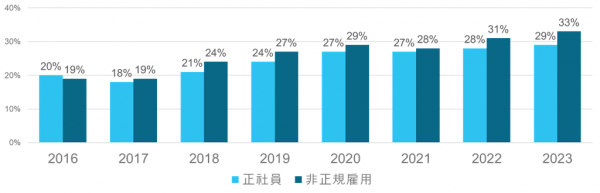 また、非正規雇用についても全体的には増加傾向です。