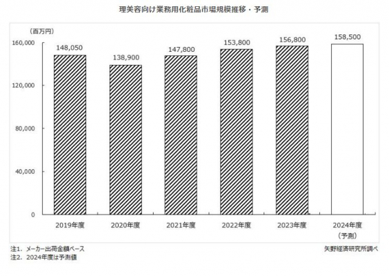 株式会社矢野経済研究所(代表取締役社長:水越 孝)は、国内の理美容向け業務用化粧品市場を調査し、市場規模、都道府県別やカテゴリー別の動向、参入企業動向、将来展望を明らかにした。