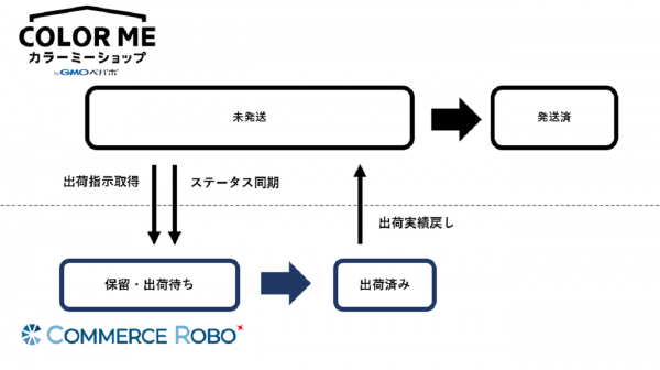 コマースロボで「出荷済み」になった注文を対象に「出荷日」「追跡番号」を「カラーミーショップ byGMOペパボ」に連携し「発送済み」に変更します。