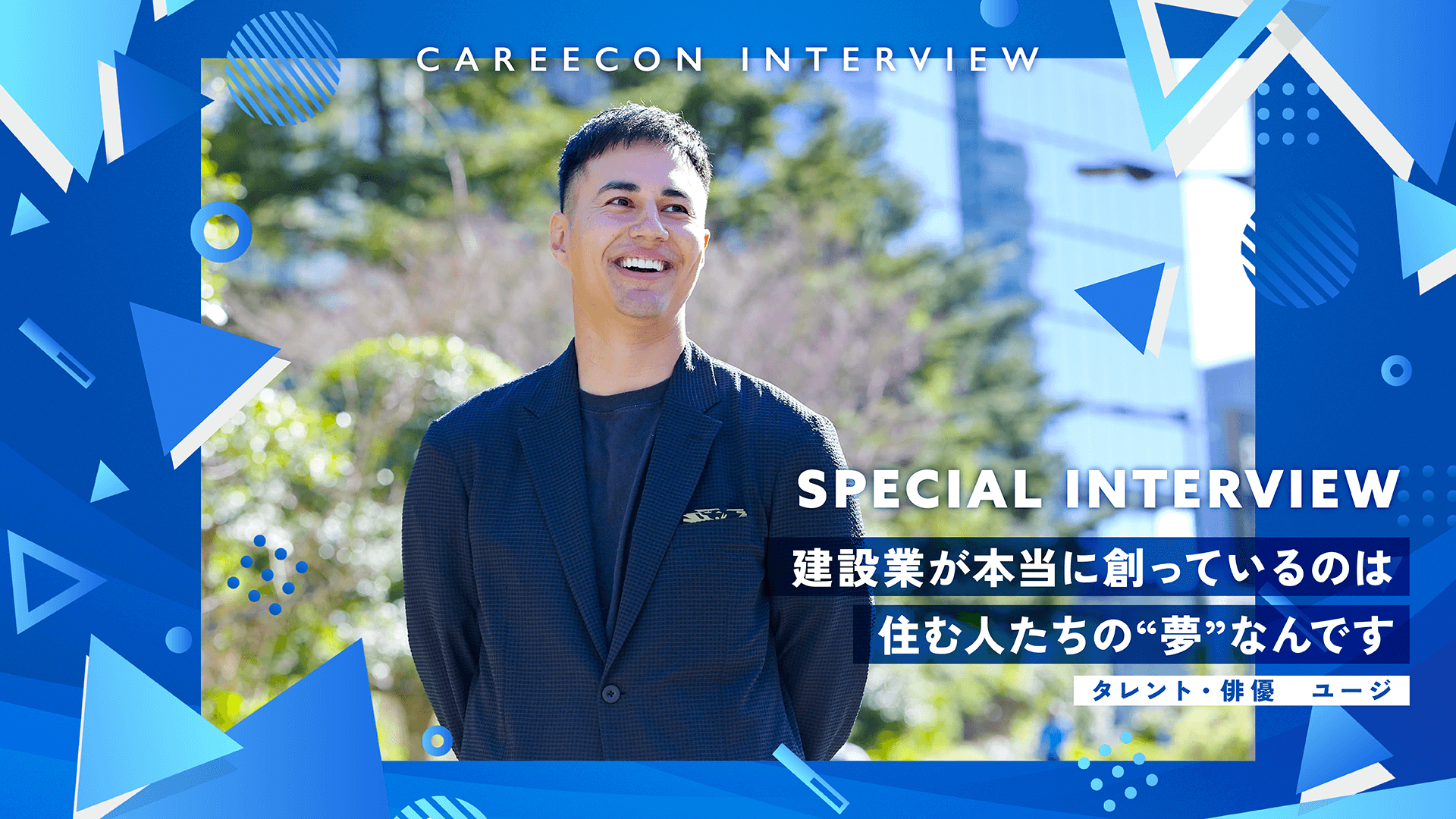 建設業界の魅力を広く伝えるため、インタビュー企画「CAREECON INTERVIEW(https://careecon.jp/blog/1075310862)」をスタートしました。第1弾のゲストは、タレント・俳優のユージ氏です。