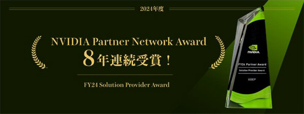 この度受賞した「Solution Provider Award」は、NVIDIA社のAIサーバー、ネットワーク製品、GPU、およびソフトウェアを含むNVIDIA テクノロジーを深く理解し、その提案と販売において大きな貢献をしたパートナーに授与されるアワードとなります。