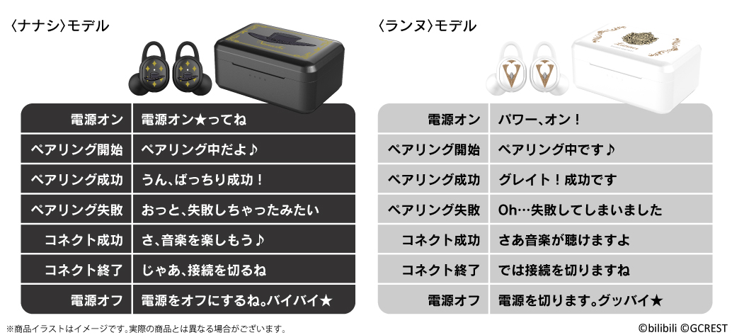 また本ワイヤレスイヤホンの販売と同日に「ナナシ」「ランヌ」の「アクリルイヤホンスタンド」をワイヤレスイヤホン同様、ONKYO DIRECT並びに「音アニ」にて販売を行います。