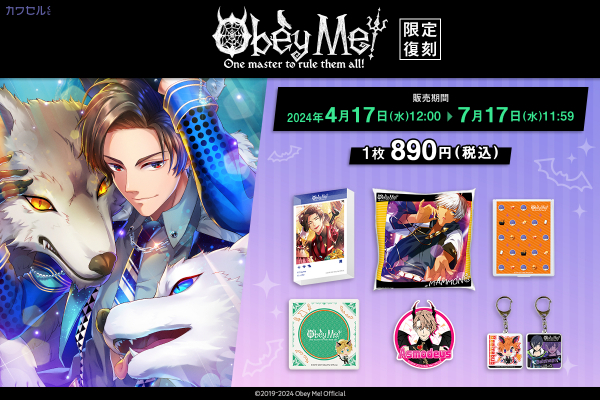 全世界で500万ダウンロード突破の「Obey Me!」の「カワセルくじ」第1弾が、改めての再販希望の声を受けて、2回目の復刻再販を開始します!悪魔たちの学園『ロイヤルアカデミーオブディアボロ』の留学生に選ばれてしまったあなた。魔界であなたを待っているのはクセしかない悪魔の7兄弟と山積みの課題!?「課題なんて簡単だ。ルールはひとつ」服従させたら、おまえの勝ち!「Obey Me!」とは、魅力的な7人の悪魔兄弟たちを服従させて、彼らとのコミュニケーションを楽しむ、イケメン悪魔調教ゲームです。