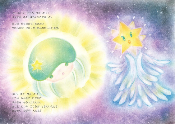 いつもひとりぼっちだった小さい星のピコは、流れ星のメテオと出会い、自分らしい輝きを取り戻していきます。