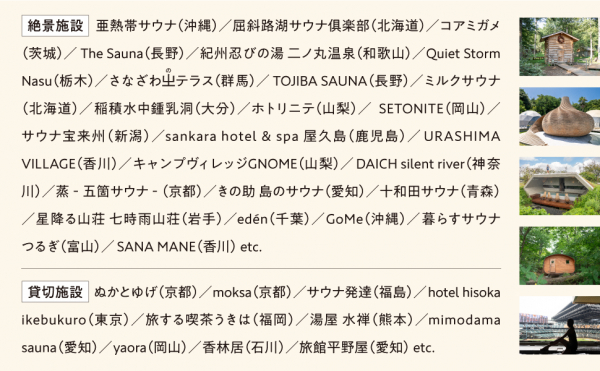 この本では、絶景が楽しめるサウナ施設、個性豊かな貸切施設など、