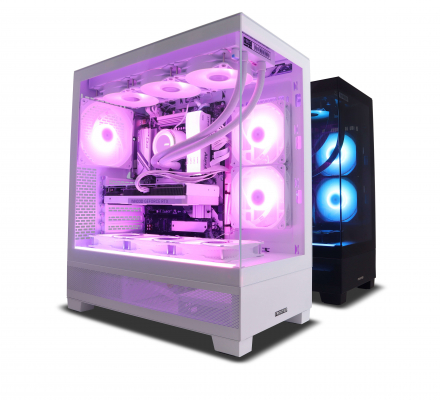 水冷CPUクーラー、グラフィックスカード、電源、ケーブルはケースカラーに合わせ、白と黒をご用意しました。白いケースには白いパーツ、黒いケースには黒いパーツを搭載しています。ライティングはソフトウェアで制御可能で、6基のケースファンと左側面のRGB-LEDラインに加え、標準搭載の光るメモリ(32GB)と光る水冷CPUクーラーの輝きを、広々としたガラスパネル越しに堪能できます。