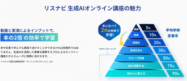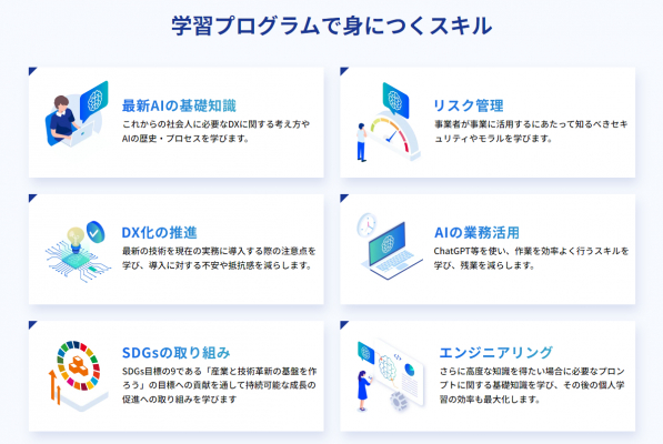 株式会社グラッドキューブ(本社:大阪市中央区 代表取締役 CEO 金島 弘樹 以下:グラッドキューブ)は、2024年4月17日(水)より「リスキリングプログラム『リスナビ』」の追加カリキュラム「生成AI を活用した業務改善を実現するリスキリングプログラム」の提供を開始いたしました。