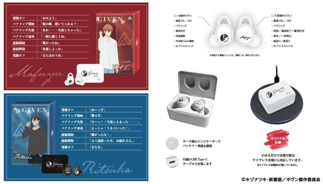 オンキヨー株式会社(所在地:大阪府大阪市、代表取締役社長:大朏 宗徳)は、完全ワイヤレスイヤホン「CP-TWS01A」とキヅナツキの大人気コミックが原作の『映画 ギヴン 柊mix』※1から「佐藤真冬」「上ノ山立夏」のキャラクター録り下ろしボイスを搭載したコラボレーションワイヤレスイヤホンの受注販売を致します。