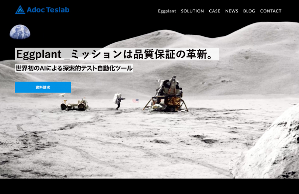新サイトではモノトーンの配色を基調としたカラーと画像によって、シンプルかつスタイリッシュなイメージを創出し、Eggplantの洗練された機能性を印象付けるデザインを採用。「宇宙探査ミッション」の画像を使用することで、「ミッションは品質保証の革新」というメッセージや「探索的」というワーディングの関連性を連想させる狙いがあります。