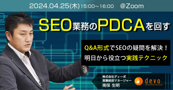 SEO対策サービスの開発・販売を行っている株式会社ディーボ(札幌市、代表取締役社長:藤沢 竜志、以下:ディーボ)は、2024年4月25日(木)15時からSEO対策セミナーを開催します。