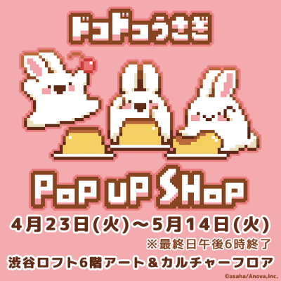 エイノバ株式会社(本社:東京都千代田区、代表取締役社長:安倍義人)のマネジメントする人気クリエイターasahaが描くキャラクター「ドコドコうさぎ」のPOP UP SHOPが渋谷ロフト6階アート&カルチャーフロア特設会場にて2024年4月23日(火)より開催されます。