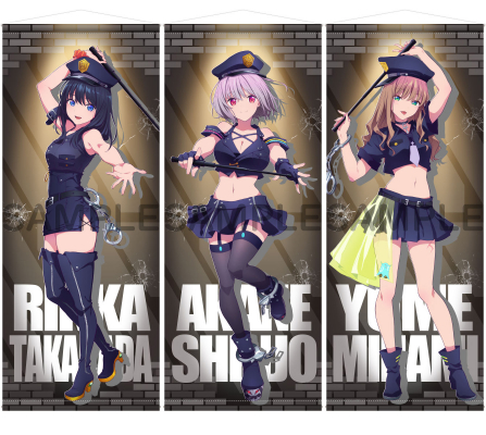 アメリカンポリスコスプレに身を包んだヒロインの3人がタペストリーになって登場。