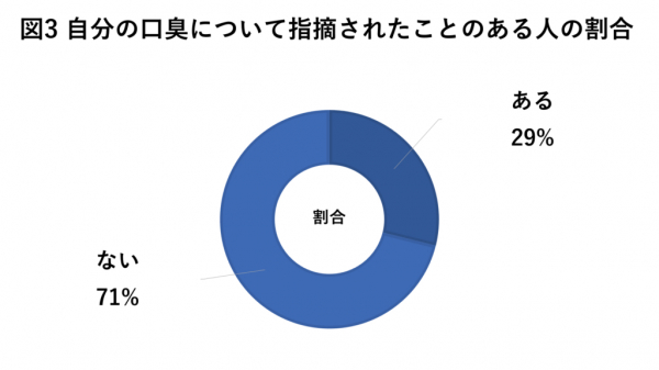 その結果、指摘されたことがない方は全体のうち7割、対して、指摘されたことがあると回答した方は3割という結果となりました。