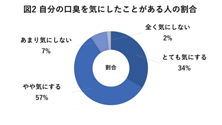 「あまり気にしない」「全くきにしない」と回答した方はわずか1割にも満たず。大半の回答者が自分の口臭を気にしていることが明らかとなりました。