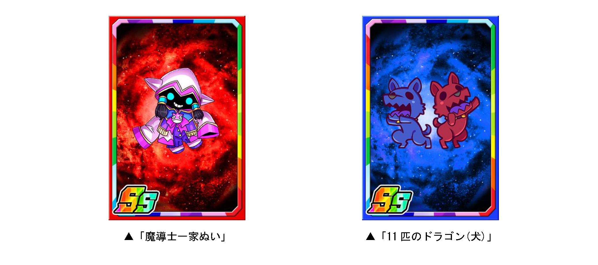 ダンジョンのボスモンスターを倒すと、まれに新たな限定子分カード「魔導士一家ぬい」「11匹のドラゴン(犬)」が手に入ります。限定子分カードは複数枚集めると進化ができ、子分スキルの効果が強力になります。