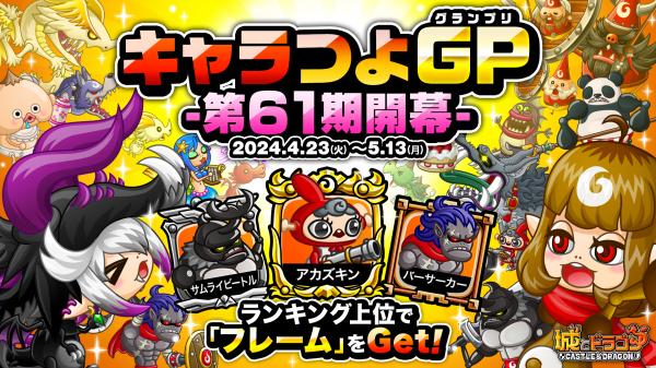 株式会社アソビズム(本社:東京都千代田区、代表取締役:大手智之)は、App Store・Google Playにて好評配信中の『城とドラゴン』で、2024年4月23日(火)より「キャラつよグランプリ第61期」を開幕いたします。