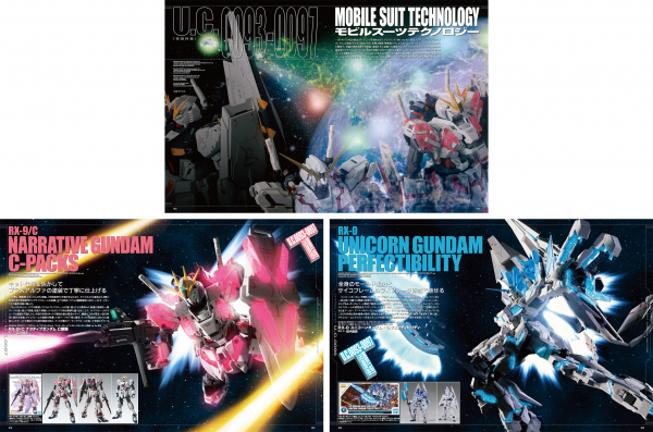 4月に発売となる最新ガンプラ「MG 1/100 ナラティブガンダム C装備 Ver.Ka」を主軸として、U.C.90年代(0093~0097)のモビルスーツに搭載されたサイコフレームを大特集いたします。