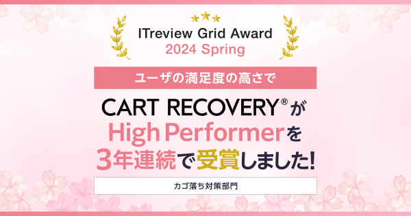 この度「CART RECOVERY(R)」は、アイティクラウド社主催の「ITreview Grid Award 2024 Spring」において、【満足度】においてユーザーから高い評価を受け、カゴ落ち対策部門で「High Performer」を受賞いたしました!