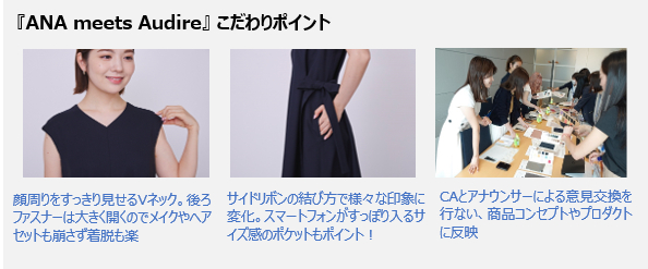 『ANA meets Audire』は、日本テレビアナウンサーが立ち上げた、現代を生きる女性がどんなシーンでも「心地良いわたし」でいられるようなスタイルを提案するアパレルブランドAudireとANAの初コラボレーションです。