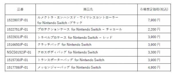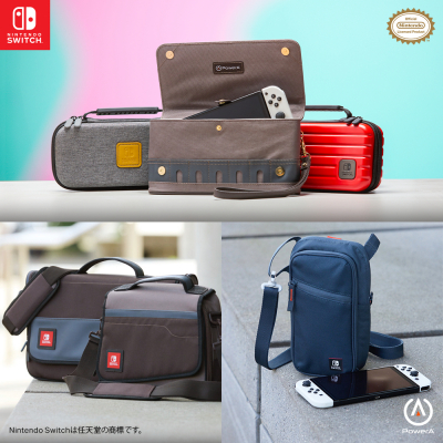 丈夫なポリエステル素材のケースに、スリムなファスナー付きポケット、ナイロン素材ハンドル、長さ調整可能なパッド付きショルダーストラップが付属。バッグの内部には、ゲーム機本体にフィットするパッド入りポケット、ケーブル、ACアダプターなどのアクセサリーが収納可能なパッド入りポケット、8枚のゲームカードを収納可能なポケット、小物を収納できるファスナー付きメッシュポケットが装備。Nintendo Switch、Nintendo Switch (有機ELモデル)、Nintendo Switch Liteに対応。