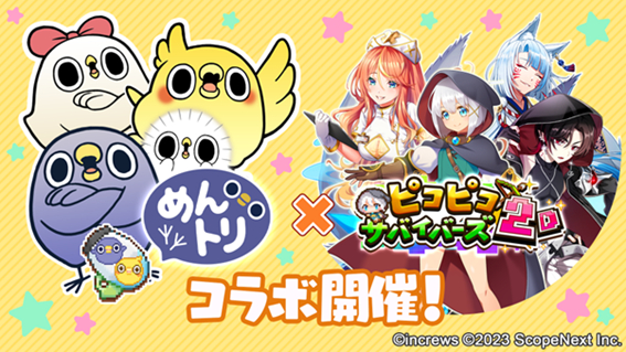 近年人気上昇中のハイブリッドカジュアルゲーム「ピコピコサバイバーズ2D」と、「めんトリ」が4月26日(金)~5月31日(金)までコラボを行います。
