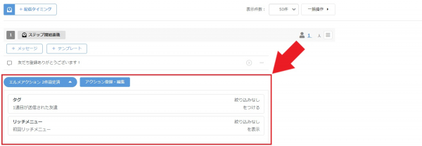 ステップ配信内で、メッセージごとにエルメアクションの設定ができるようになりました。