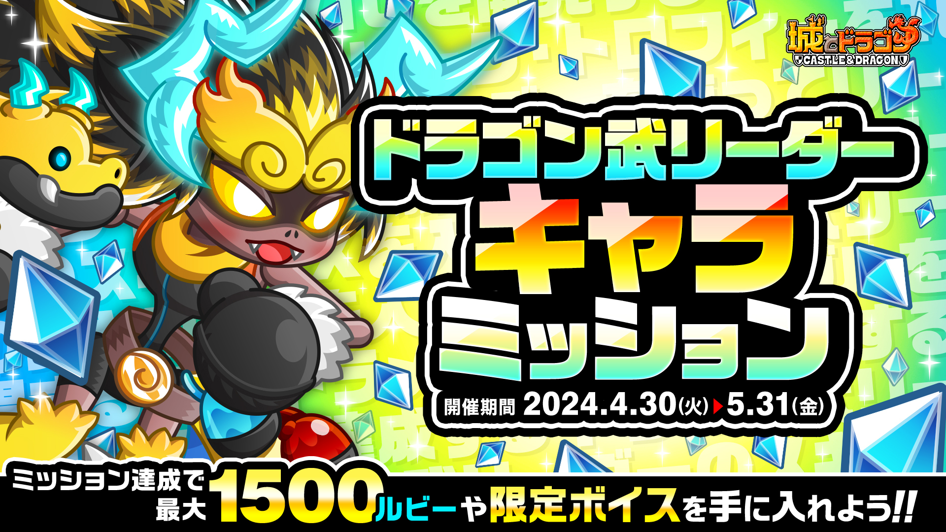 株式会社アソビズム(本社:東京都千代田区、代表取締役:大手智之)は、App Store・Google Playにて好評配信中の『城とドラゴン』で、「ドラゴン武リーダーキャラミッション」を2024年4月30日(火)より開催いたします。