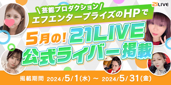 本日より、5月の21LIVE公式ライバーをエフエンタープライズのホームページで紹介しています。
