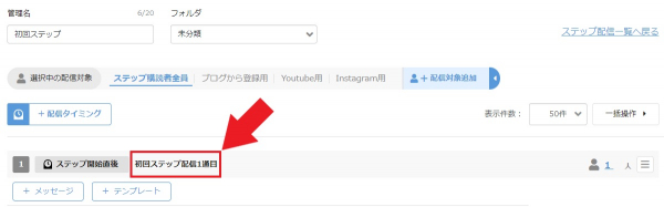 アップデートにより、ステップ配信内の各配信メッセージに対して管理名を付けられるようになりました。