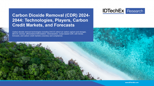 IDTechEx(先進技術調査会社: 本社英国 ケンブリッジ)は、「二酸化炭素除去(CDR) 2024-2044年」と題した調査レポートを発行し、2024年4月24日より、日本法人のアイディーテックエックス株式会社(東京都千代田区)での販売を開始しました。
