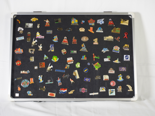 スポーツ大会やアニメなどの販売用グッズ、イベントやキャンペーンのノベルティなど、当時の想いを形に表すピンバッジは、形状もデザインも凝ったものが多く、小さいながらも、個性が際立つ存在です。