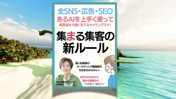 生成AIを使って、全てのSNS(インスタ・Facebook・TikTok・YouTube・X)とSEO対策と広告をバランスよく組み合わせて行う、個人起業家向けの集客方法を新しくリニューアルし本書で解説しております。