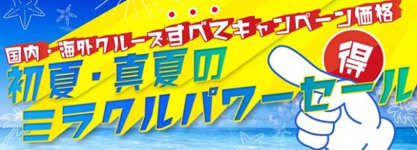 クルーズ予約サイト「ベストワンクルーズ」運営の株式会社ベストワンドットコム(本社:東京都新宿区、代表取締役:澤田秀太)は、本日より「初夏・真夏のミラクルパワーセール」を開始いたしました。5月31日までの期間限定となります。