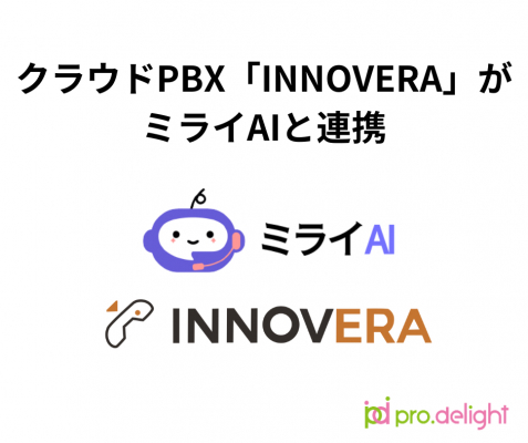 株式会社ソフツー(本社:東京都中央区、代表取締役:鍾勝雄 以下「ソフツー」)が提供するクラウド型電話AIサービス「ミライAI」は、株式会社プロディライト(本社:大阪府大阪市、代表取締役社長:小南 秀光、証券コード:5580、以下「プロディライト」)が提供するクラウドPBX「INNOVERA」と連携します。