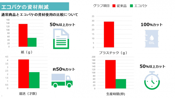 個包装の削減で、廃棄される資材の量を削減しました。