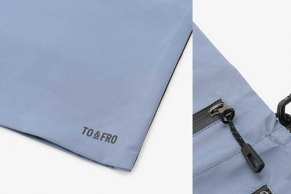 サコッシュの生地には、ファクトリーブランドならではの耐水圧20,000mmの3層防水機能をもった、TO&FROオリジナル生地を採用。この生地は、山頂など苛酷な環境にも耐えられる、登山ウェアと同等の撥水機能・防水機能・透湿機能を備えています。