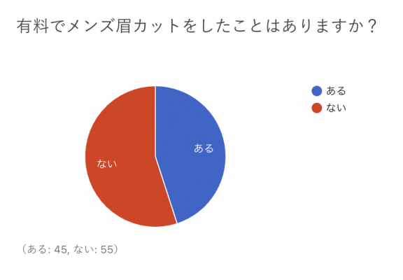 「有料でメンズ眉カットをしたことはありますか?」のアンケート調査では、“ある”が45%、“ない”が55%でした。